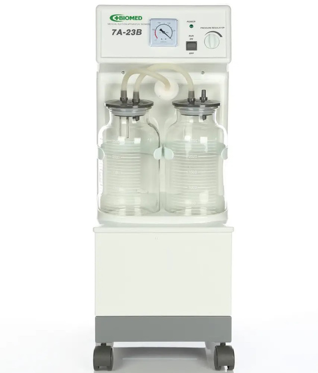 Медичний відсмоктувач 7А-23В призначений для відсмоктування повітря і рідини з ран і порожнин при проведенні хірургічних операцій і в післяопераційний період в медичних закладах.