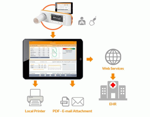 Програмне забезпечення для ПК: програмне забезпечення Winspiro PRO для ПК дозволяє вести базу даних пацієнтів, аналізувати результати тестів, проводити статистичний аналіз і формувати звіти, а також експортування кривих і числових параметрів в різні формати, включаючи Word, Excel, Adobe Acrobat, HTML і текстові файли. Програмне забезпечення дозволяє просто і швидко завантажувати дані тестів з спирометра для подальшої обробки і формування звіту.